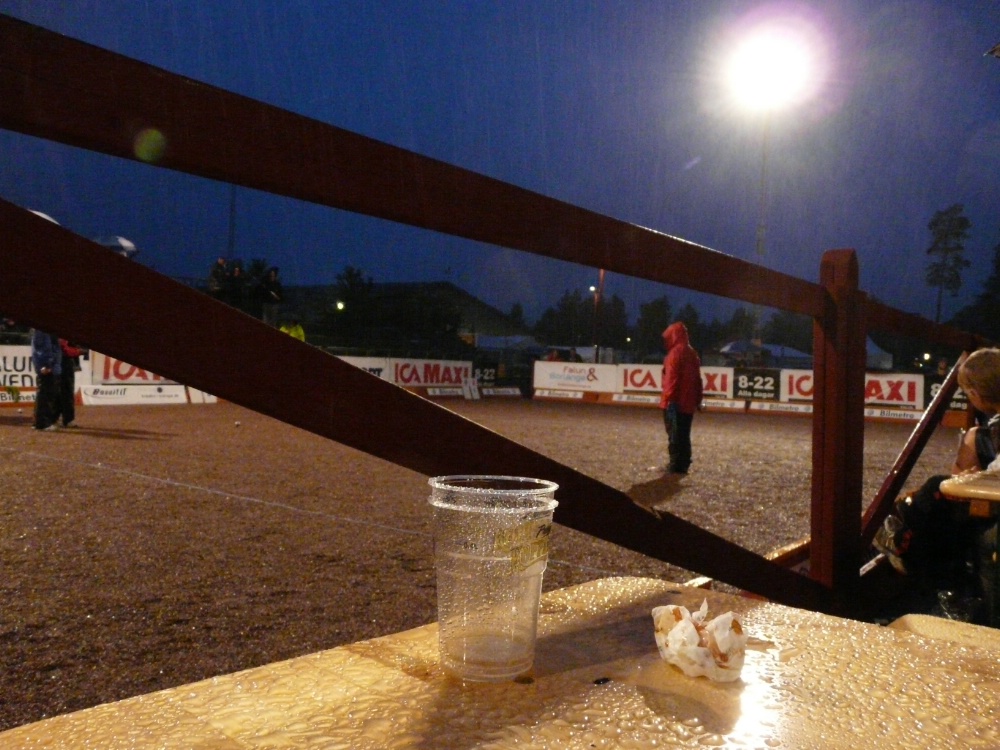 Svårt att göra någonting åt, förstås. Och det är på ett sätt olyckligt att SM ska vara en så väderberoende tillställning. Det går inte att skapa den fantastiska boulefesten när man måste huttra under paraplyer. Å andra sidan kommer den nästan automatiskt då man kan sitta i kortbyxor i solskenet.